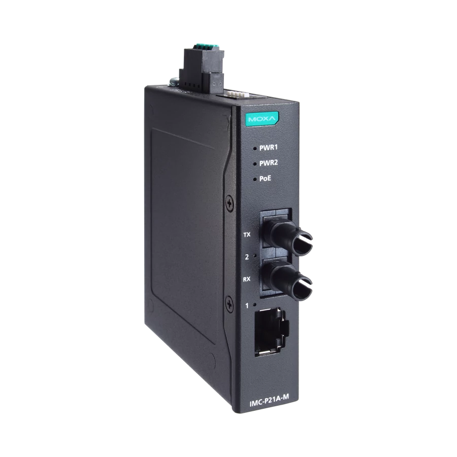 A Moxa IMC-P21A-G2 sorozatú PoE+ Fast Ethernet–optikai médiakonverterek stabil és megbízható 10/100BaseT(X) – 100Base-FX konverziót biztosítanak ipari környezetben. PSE eszközként működnek, vagyis képesek közvetlenül táplálni más PoE-képes eszközöket (PD-ket), így nincs szükség külön tápegységre vagy extra kábelezésre.