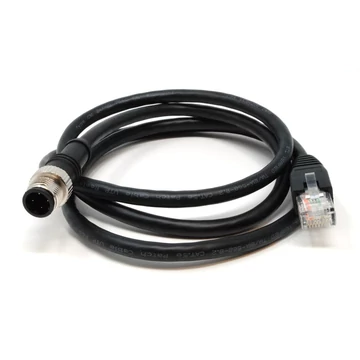 1 méteres M12-RJ45 Cat-5E UTP Ethernet kábel vízálló, 4 pólusú, D-kódolású M12 csatlakozóval