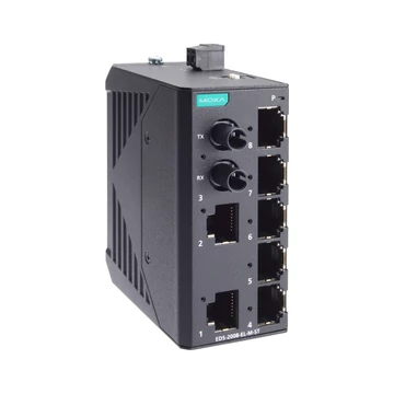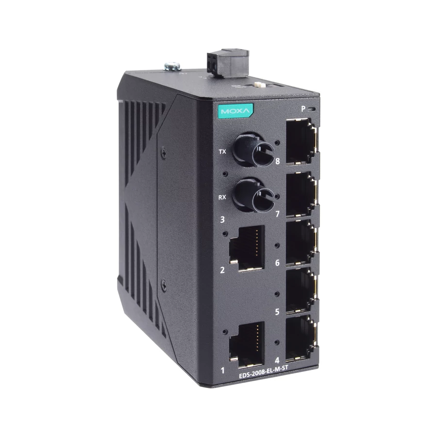 Az EDS-2005-EL 5-portos és EDS-2008-EL 8-portos ipari Ethernet switchek 10/100M réz porttal rendelkeznek, amelyek ideálisak az egyszerű iprai Ethernet kapcsolatokat igénylő alkalmazásokhoz. Ahhoz, hogy a különböző iparágakból érkező igényeket minél sokszínűbben szolgálják ki, ezek az eszközök lehetővé teszik a felhasználók számára, hogy egy külső panelen, DIP kapcsolóval ki- és bekapcsoljanak bizonyos funkciókat, pl. Quality of Service (QoS) és broadcast storm protection (BSP). A robosztus fémháznak köszönhetően ipari környezetben is kiválóan alkalmazható. Az EDS-2005-EL/EDS-2008-EL sorozat eszközei 12/24/48 VDC egyszeres áramellátással és magas szintű EMI/EMC képességgel rendelkeznek, valamint DIN-sínre szerelhetők. A kompakt méretükön túl a 100%-os égetési teszt szól az alkalmazásuk mellett, ami az üzembe helyezést követő megbízható működést szavatolja. A switchek üzemi hőméréslet tartománya -10 -60 °C, de elérhetők a kiterjesztett hőmérsékelt tartományú (-T modellek) is, amelyek -40 -75 °C között működnek.