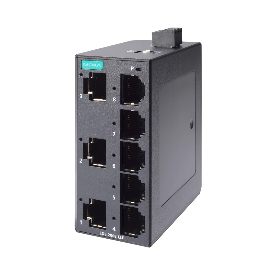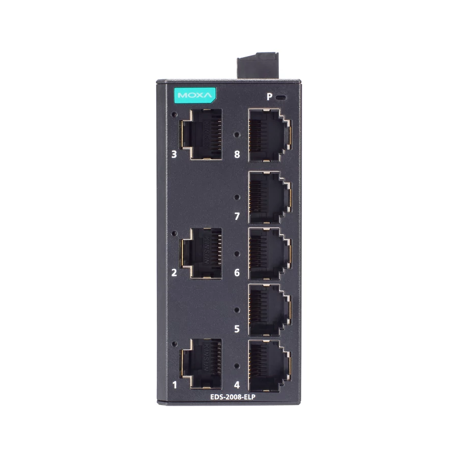 A Moxa EDS-2008-ELP 8-portos ipari Ethernet switch-ek 10/100M réz porttal rendelkeznek, amelyek ideálisak az egyszerű ipari Ethernet kapcsolatokat igénylő alkalmazásokhoz. Ahhoz, hogy a különböző iparágakból érkező igényeket minél sokszínűbben szolgálják ki, ezek az eszközök lehetővé teszik a felhasználók számára, hogy egy külső panelen, DIP kapcsolóval ki- és bekapcsoljanak bizonyos funkciókat, pl. Quality of Service (QoS) és broadcast storm protection (BSP). A Moxa EDS-2005-ELP/EDS-2008-ELP sorozat eszközei 12/24/48 VDC egyszeres áramellátással és magas szintű EMI/EMC képességgel rendelkeznek, valamint DIN-sínre szerelhetők. A kompakt méretükön túl a 100%-os (égetési) hőteszt szól az alkalmazásuk mellett, ami az üzembe helyezést követő megbízható működést szavatolja. A switchek üzemi hőméréslet tartománya -10 -60 °C.