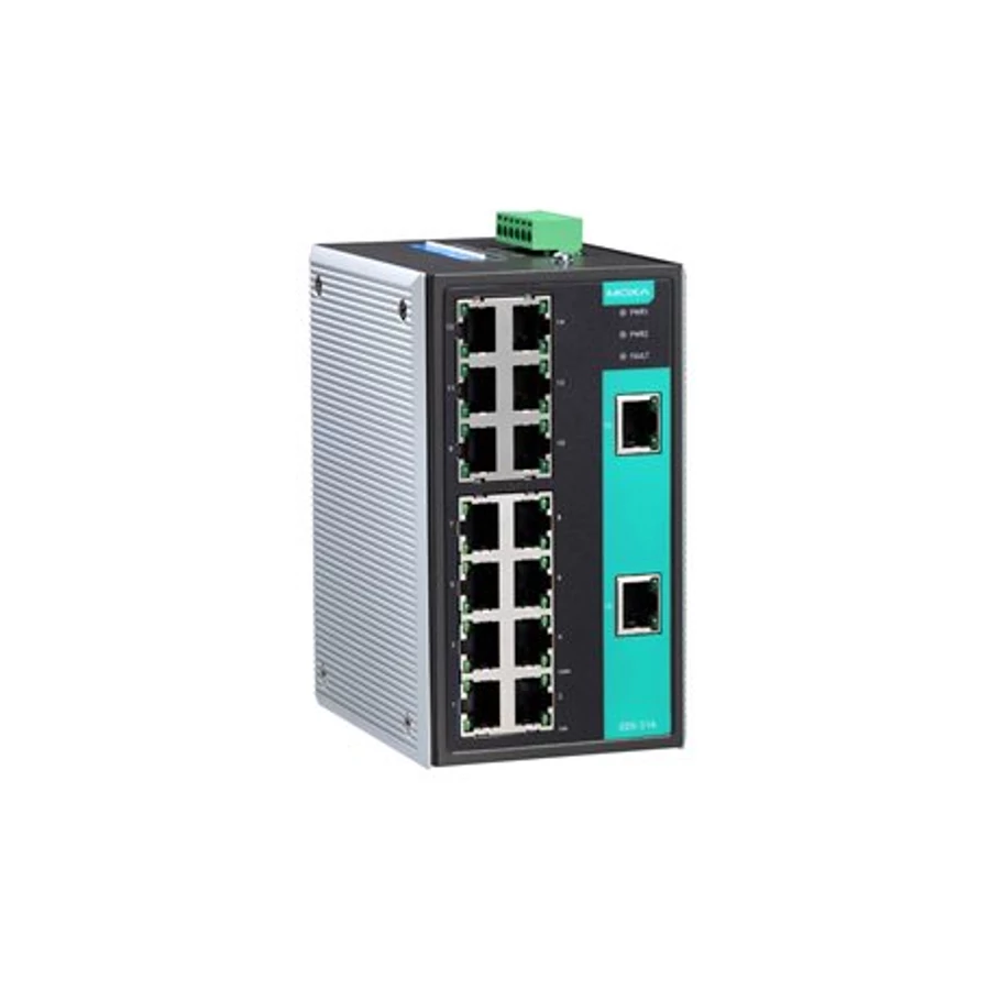 A Moxa EDS-316 16 portos Ethernet switch-ek, amelyek egy gazdaságos megoldást jelentenek az ipari Ethernet kapcsolatok számára. A beépített relés figyelmeztető funkció riasztja a hálózati mérnököket, amikor a tápellátás vagy a portok kiesnek. A switch-eket az olyan zord ipari körülményekhez igazodva tervezték, amelyek veszélyesek is lehetnek (Class I, Div. 2/ATEX). A switch-ek megfelelnek az FCC, TÜV, UL, és CE szabványoknak, és két modell típusban érhetőek el. Az egyik a szabványos működési hőfoktartománnyal rendelkezik (0 és 60°C között) a másik pedig kiterjesztett hőfoktartománnyal (-40 és 75°C között). Mindkét modell 100%-osan megfelelt a hőteszten, így bizonyítva, hogy megfelelnek az ipari automatizálás speciális igényeinek. A Moxa EDS-316 switch-ek egyszerűen installálhatóak DIN-sínen, vagy az elosztó dobozokon.