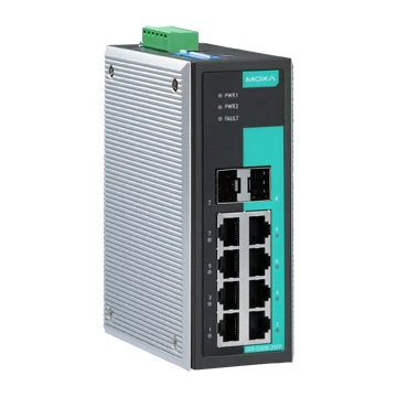 A Moxa EDS-G308 sorozat 8 Gigabites Ethernet portokkal és akár 2 optikai porttal van felszerelve, ezáltal ideálisak a magas sávszélességet követelő alkalmazások számára. A Moxa EDS-G308 switch-ek gazdaságos megoldást jelentenek az ipari Ethernet kapcsolatok számára. A beépített relés figyelmeztető funkció riasztja a hálózati mérnököket, amikor a tápellátás vagy a portok kiesnek. A Moxa EDS-G308 sorozat 2 modellt is tartalmaz: Az egyik a szabványos működési hőfoktartománnyal rendelkezik (0 és 60°C között) a másik pedig kiterjesztett hőfoktartománnyal (-40 és 75°C között). Mindkét modell 100%-osan megfelelt a hőteszten, így bizonyítva, hogy megfelelnek az ipari automatizálás speciális igényeinek. A Moxa EDS-G308 switch-ek egyszerűen installálhatóak DIN-sínen, vagy az elosztó dobozokon.