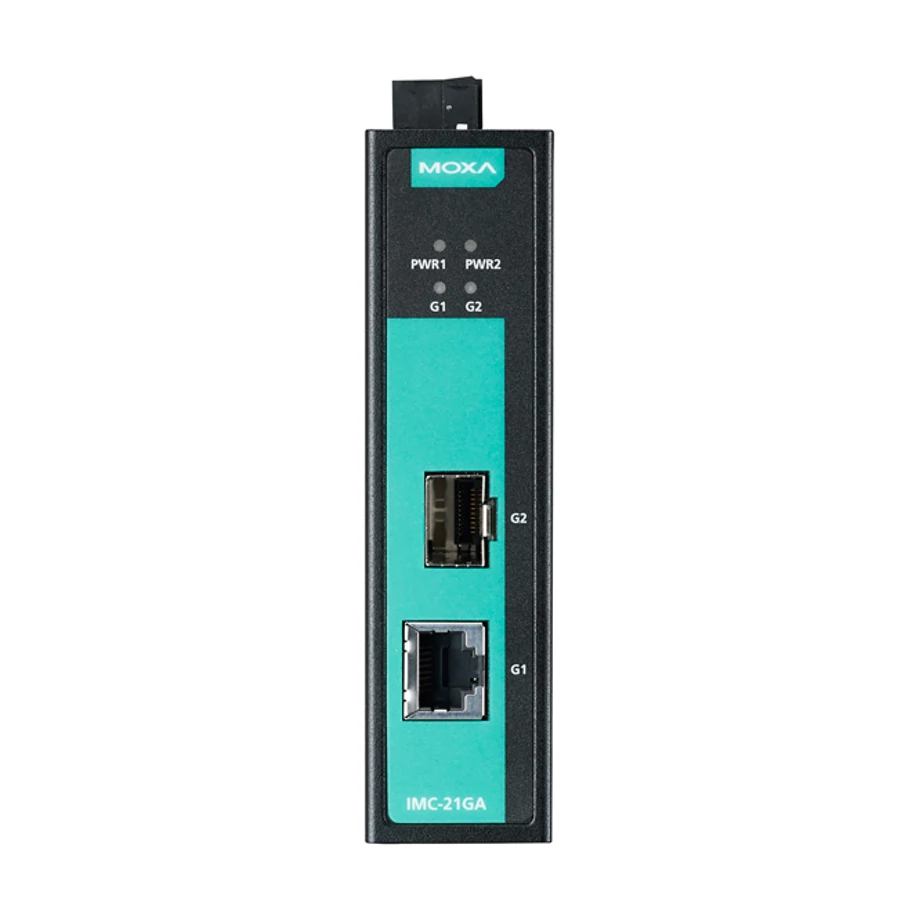 A MOXA IMC-21GA ipari Gigabites médiakonvertereket megbízható és stabil 10/100/1000BaseT(X) – 100/1000Base-SX/LX vagy választható 100/1000Base SFP modul közötti médiakonverzióra tervezték. A készülék támogatja az IEEE 802.3az (Energy-Efficient Ethernet) szabványt és a 10K jumbo frame funkciót, így egyszerre csökkenti az energiafogyasztást és javítja az adatátvitel hatékonyságát. Minden IMC-21GA modell 100%-os beégetési teszten megy keresztül. Az eszközök -10 és +60 °C között megbízhatóan működnek.