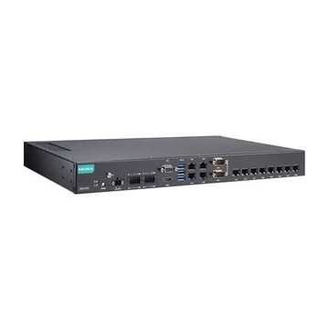 Moxa RKP-C110-C1-8L-T 19" rack szekrénybe szerelhető, 1U magas ipari számítógép: Intel® Celeron® 6305E processzor, 12 LAN port, 2 soros port, 8 DI, 8DO, 3 USB 3.0 port, 1 VGA port, 1 HDMI port, 2 SSD slot, 12 és 24V DC tápbemenet, -30 és 60°C közötti működési hőfoktartomány.