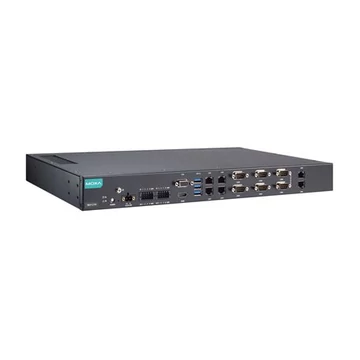 Moxa RKP-C110-C7-2L4C-T 19" rack szekrénybe szerelhető, 1U magas ipari számítógép: Intel® Core™ i7-185G7E processzor, 6 LAN port, 6 soros port, 8 DI, 8DO, 3 USB 3.0 port, 1 VGA port, 1 HDMI port, 2 SSD slot, 12 és 24V DC tápbemenet, -30 és 60°C közötti működési hőfoktartomány.