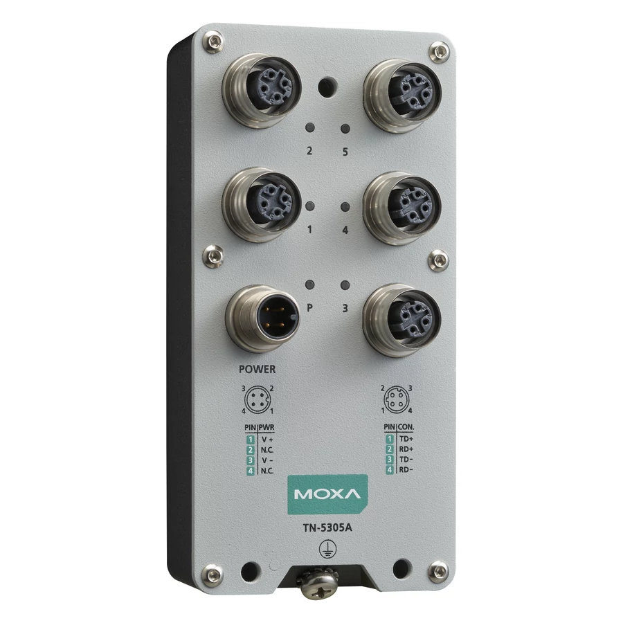 A Moxa ToughNet TN-5300A sorozat M12-es nem menedzselt ipari Ethernet switch-ek elsősorban vasúti járműfedélzeti és más zord, ipari alkalmazásokra lettek tervezve. A Moxa TN-5300A sorozat switch-ek M12-es csatlakozókkal rendelkeznek, így garantálják a folyamatos kommunikációt olyan környezetben is, ahol a rázkódás és az ütések mindennaposak. A TN-5300A sorozat Ethernet switch-ek 5 vagy 8 Fast Ethernet M12 porttal rendelkeznek, valamint -40 és 70°C közötti széles hőfoktartományban működnek, mindemellett megfelelnek az EN 50155 szabvány által definiált követelményeknek, mint például a működési hőfoktartomány, tápbemeneti feszültség, túlfeszültség védelem, ESD, rezgések és ütések elleni védelem stb. így robusztus és megbízható megoldást nyújtanak vasúti és más ipari alkalmazásokhoz.