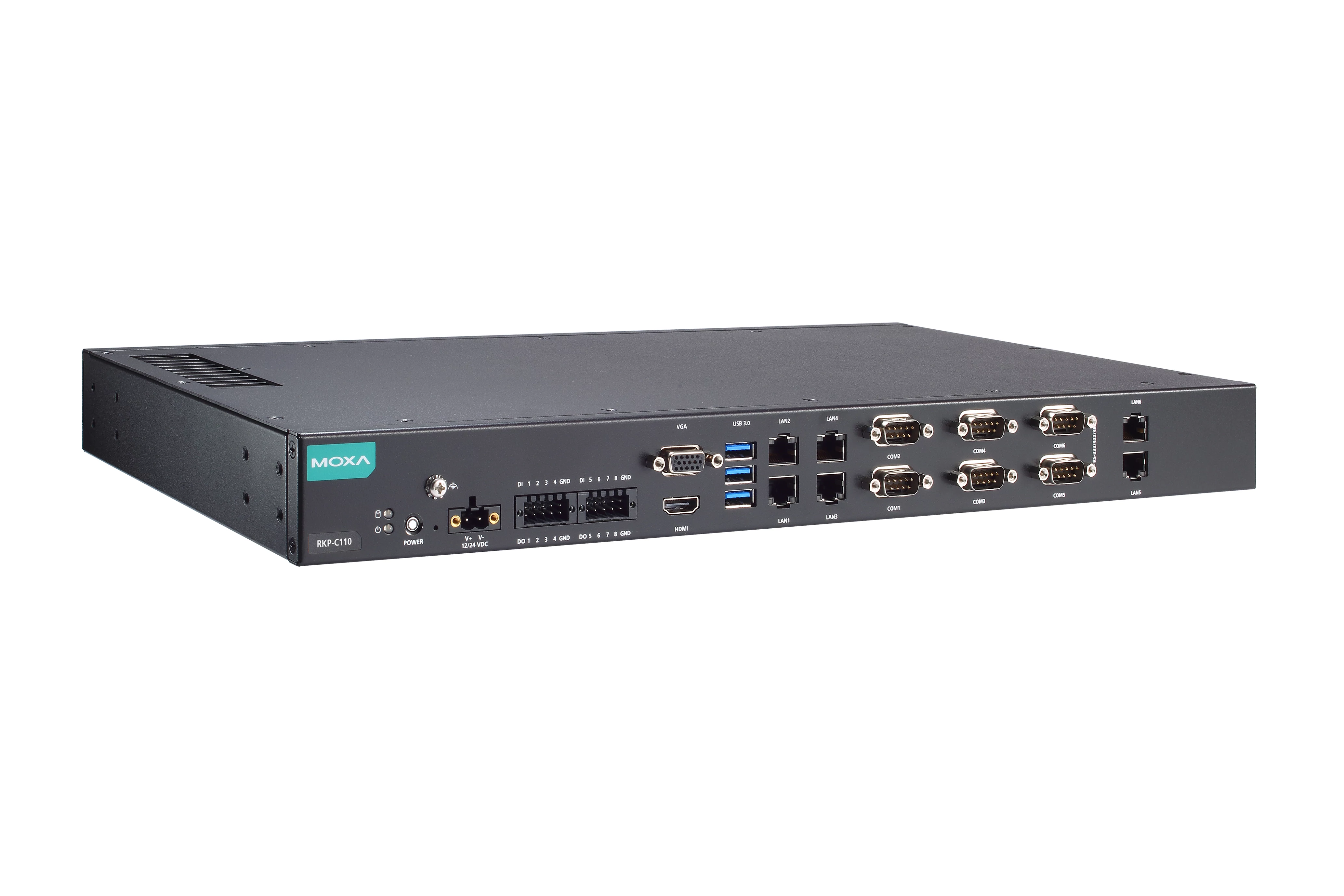 A Moxa RKP-C110 sorozat ipari számítógépei 19" rack szekrénybe szerelhető kivitellel és Intel Celeron® processzorral rendelkeznek. Ezek az ipari PC-k megfelelnek a széleskörű ipari IT és OT igényeknek, hiszen nagyon változatos interfészekkel érhetőek el, így akár 10, szoftveresen konfigurálható RS-232/422/485 soros porttal, akár 12 gigabit Ethernet porttal, 8 digitális bemenettel és 8 digitális kimenettel. Ezek a kommunikációs interfészek mind az eszköz előlapján találhatóak meg, így egyszerűen hozzáférhetőek ipari alkalmazások során. A két forgatható 2,5"-os SSD és a cserélhető RTC elem megbízható, tartós és felhasználóbarát megoldást biztosít ipari alkalmazásokhoz. Az RKP-C110 ipari PC-k ventilátor nélkül is bírják a szélsőséges környezeti körülményeket, -30 és 60°C közötti hőfoktartományban működnek. A beépített TPM 2.0 modul biztonságossá teszi a számítógépet jogosulatlan hozzáférési próbálkozás esetén.