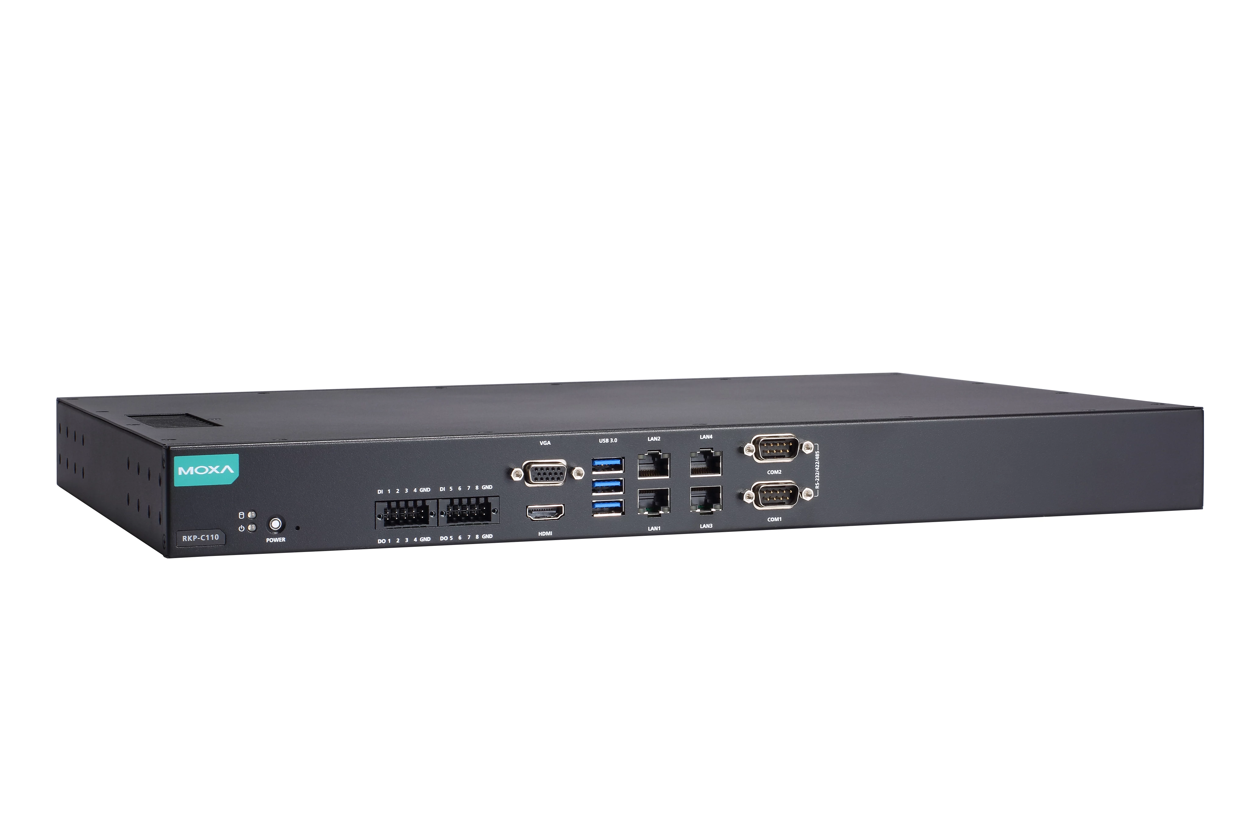 A Moxa RKP-C110 sorozat ipari számítógépei 19" rack szekrénybe szerelhető kivitellel és Intel Celeron® processzorral rendelkeznek. Ezek az ipari PC-k megfelelnek a széleskörű ipari IT és OT igényeknek, hiszen nagyon változatos interfészekkel érhetőek el, így akár 10, szoftveresen konfigurálható RS-232/422/485 soros porttal, akár 12 gigabit Ethernet porttal, 8 digitális bemenettel és 8 digitális kimenettel. Ezek a kommunikációs interfészek mind az eszköz előlapján találhatóak meg, így egyszerűen hozzáférhetőek ipari alkalmazások során. A két forgatható 2,5"-os SSD és a cserélhető RTC elem megbízható, tartós és felhasználóbarát megoldást biztosít ipari alkalmazásokhoz. Az RKP-C110 ipari PC-k ventilátor nélkül is bírják a szélsőséges környezeti körülményeket, -30 és 60°C közötti hőfoktartományban működnek. A beépített TPM 2.0 modul biztonságossá teszi a számítógépet jogosulatlan hozzáférési próbálkozás esetén.