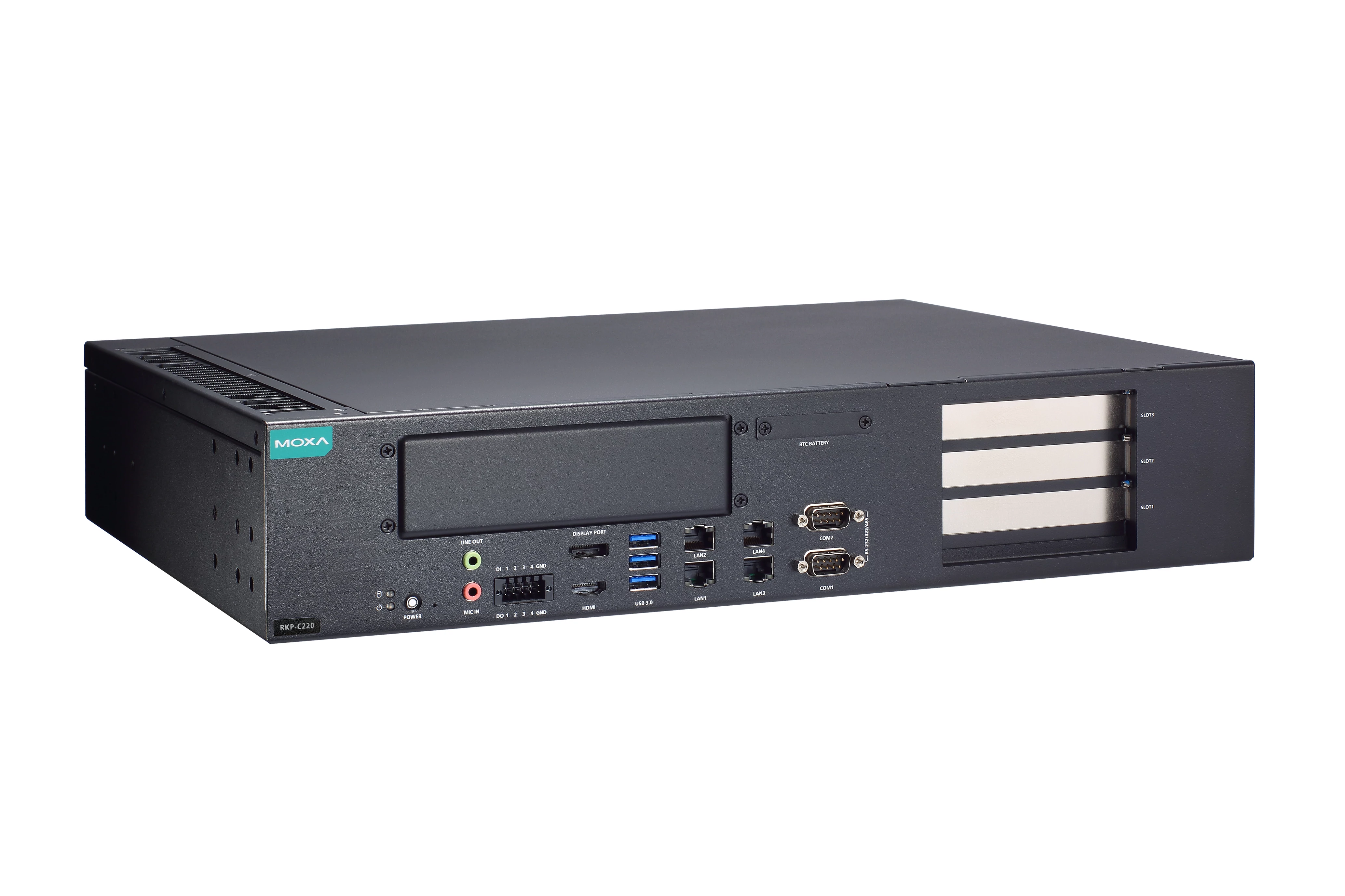 A Moxa RKP-C220 sorozat nagy teljesítményű, ventilátor nélküli ipari rackmount számítógépei 13. generációs Intel® Core™ i3, i5, i7 vagy i9 processzorokkal érhetők el, akár 24 maggal és 32 szállal, így könnyedén kiszolgálják a modern ipari alkalmazások igényeit. A készülékek rendkívül gazdag interfészkészlettel rendelkeznek: akár 8 gigabites Ethernet porttal, akár 10 Moxa saját tervezésű, szoftveresen választható RS-232/422/485 soros porttal, akár 2 CAN porttal, valamint 4 digitális bemenettel és 4 digitális kimenettel.