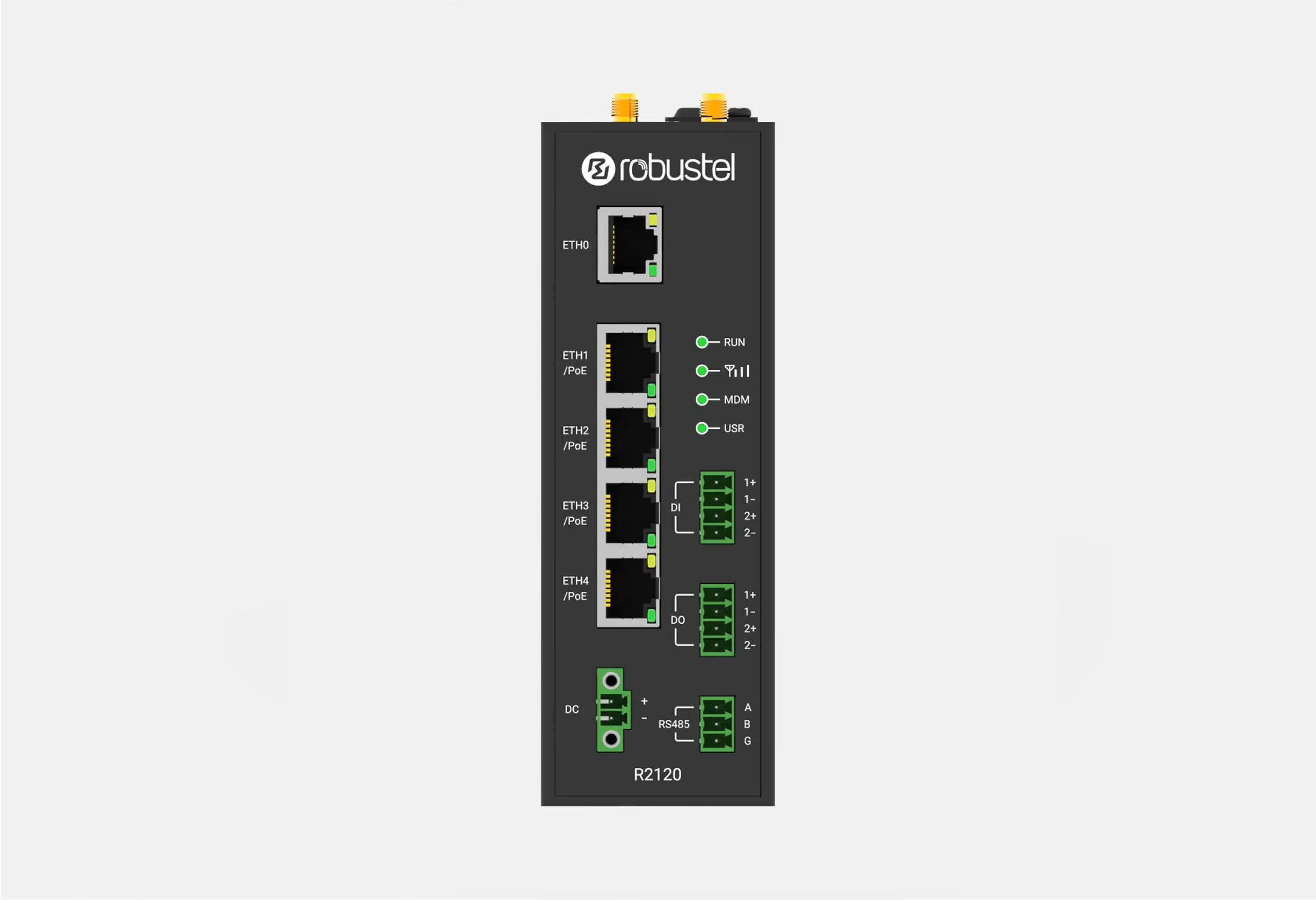 Az R2120 egy speciális ipari mobil PoE router, amelyet intelligens biztonsági alkalmazásokhoz terveztek. Öt darab Ethernet porttal, köztük négy PoE-PSE porttal, valamint két digitális bemenettel, két digitális kimenettel és egy RS-485 soros porttal van felszerelve, így ideális a modern biztonsági rendszerek egyedi igényeinek kielégítésére.