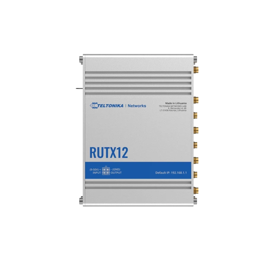 A Teltonika RUTX12 Dual LTE Cat 6 router a leggyorsabb LTE router 5 Gigabit Ethernet porttal nagy adatátviteli teljesítményt, megbízható hálózati kapcsolatot nyújt. Fejlett biztonsági funkciókkal ellátva: multi VPN, tűzfal.