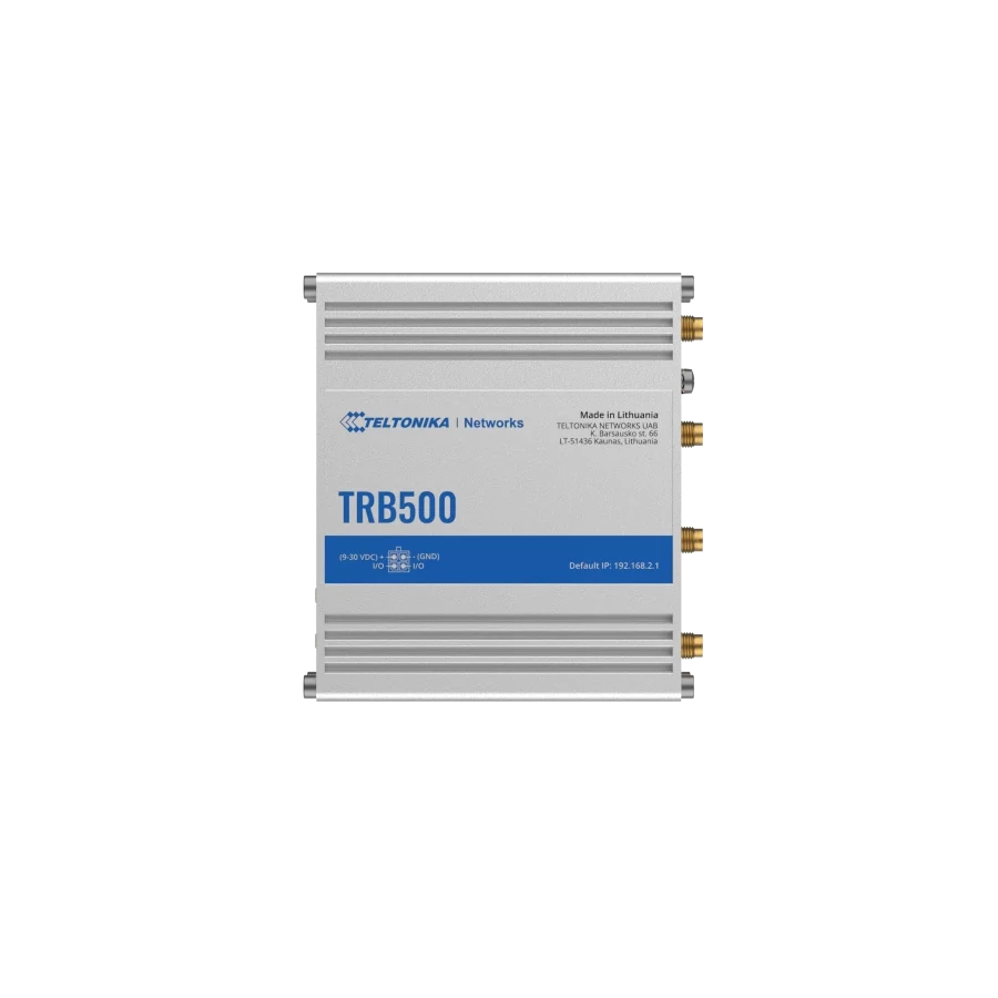 A Teltonika TRB500 egy kompakt, rendkívül nagy, akár 1 Gbps-os mobilinternet sebességre is képes ipari 5G  gateway. Támogatja az SA és az NSA architectúrákat az 5G infrastruktúra kihasználása érdekében. Az ultra alacsony késleltetésnek köszönhetően remek választás a kritikus fontosságú alkalmazások esetén. Nagy adatmennyiség átvitele esetén is megbbízható kapcsolatot biztosít. Kompatilbilis a 4G (LTE CAT20) és a 3G hálózati technológiákkal. Kompakt és energiahatékony 5G gateway 1x Gigbit Ethernet interfész 2x konfigurálható I/O. Kompatibilis a 4G és 3G technológiákkal RutOS operációs rendszerrel érkezik, amely fejlett biztonsági funkciókat és kompatibilitást biztosít.