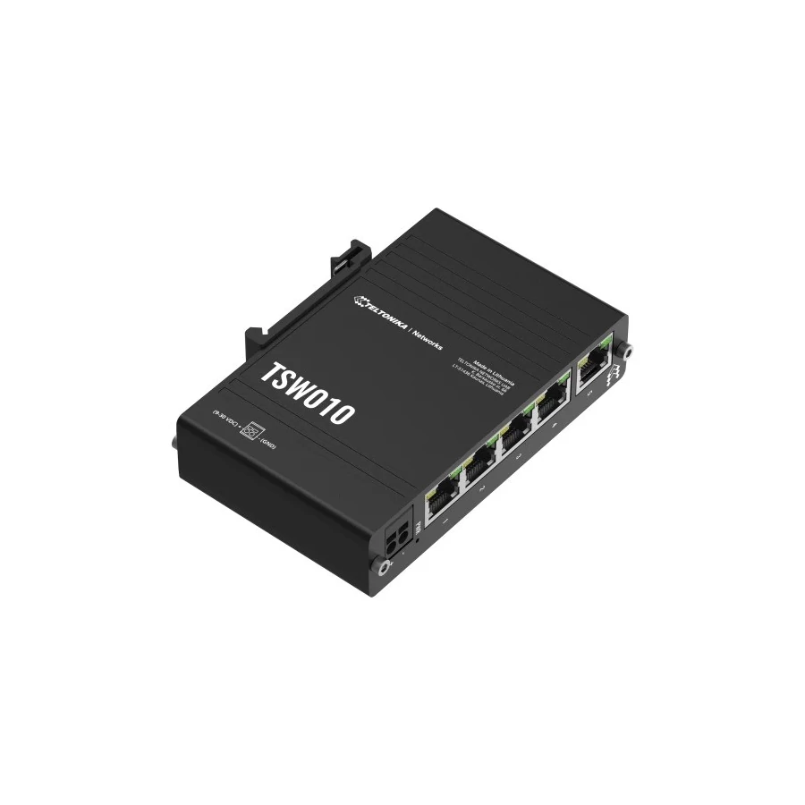 A TSW010 egy költséghatékony, nem menedzselt ipari Ethernet switch, amely 5 10/100 Ethernet porttal és integrált DIN rögzítéssel rendelkezik.