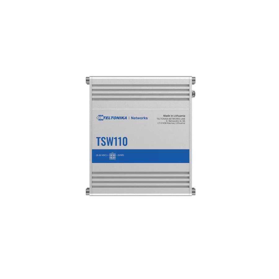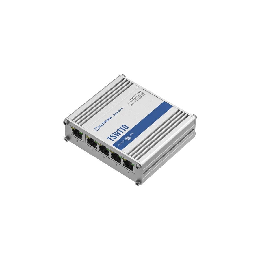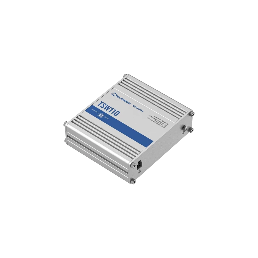 A TSW110 Layer 2-es, nem menedzselt switch a TSW100 switch egyszerűsített változata. Lehetővé teszi az első LAN porton keresztüli bekapcsolást. Öt 10/100/1000 Mbsp Ethernet porttal rendelkezik a nagy sávszélességet igénylő megoldáshoz. Többféle tápegység feszültséget támogat (9-30 V). Nagy sávszélességű alkalmazások esetén megbízható adatkapcsolatot nyújt.