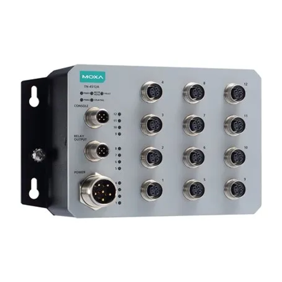 A Moxa ToughNet TN-4500A sorozatú M12-es irányított Ethernet switcheket vasúti alkalmazásokhoz tervezték, többek között vasúti járművekben és a pálya mentén történő telepítéshez. A TN sorozatú switchek M12-es és más kör alakú csatlakozókat használnak a szoros csatlakozás biztosítására és a megbízható működés garantálására az olyan környezeti zavarok mellett, mint a rázkódás vagy az ütődések. A TN-4500A sorozat 12 vagy 24 Fast Ethernet M12 portot kínál – igény szerint IEEE 802.3at/af PoE funkcióval –, a Gigabites modellek pedig 4 darab Gigabit Ethernet porttal rendelkeznek, PoE-támogatással és opcionális bypass relé funkcióval. Az optikai modellek ezen felül 2 darab Gigabites optikai portot is biztosítanak, beépített, 2 km-es multimódusú optikai adóvevővel.