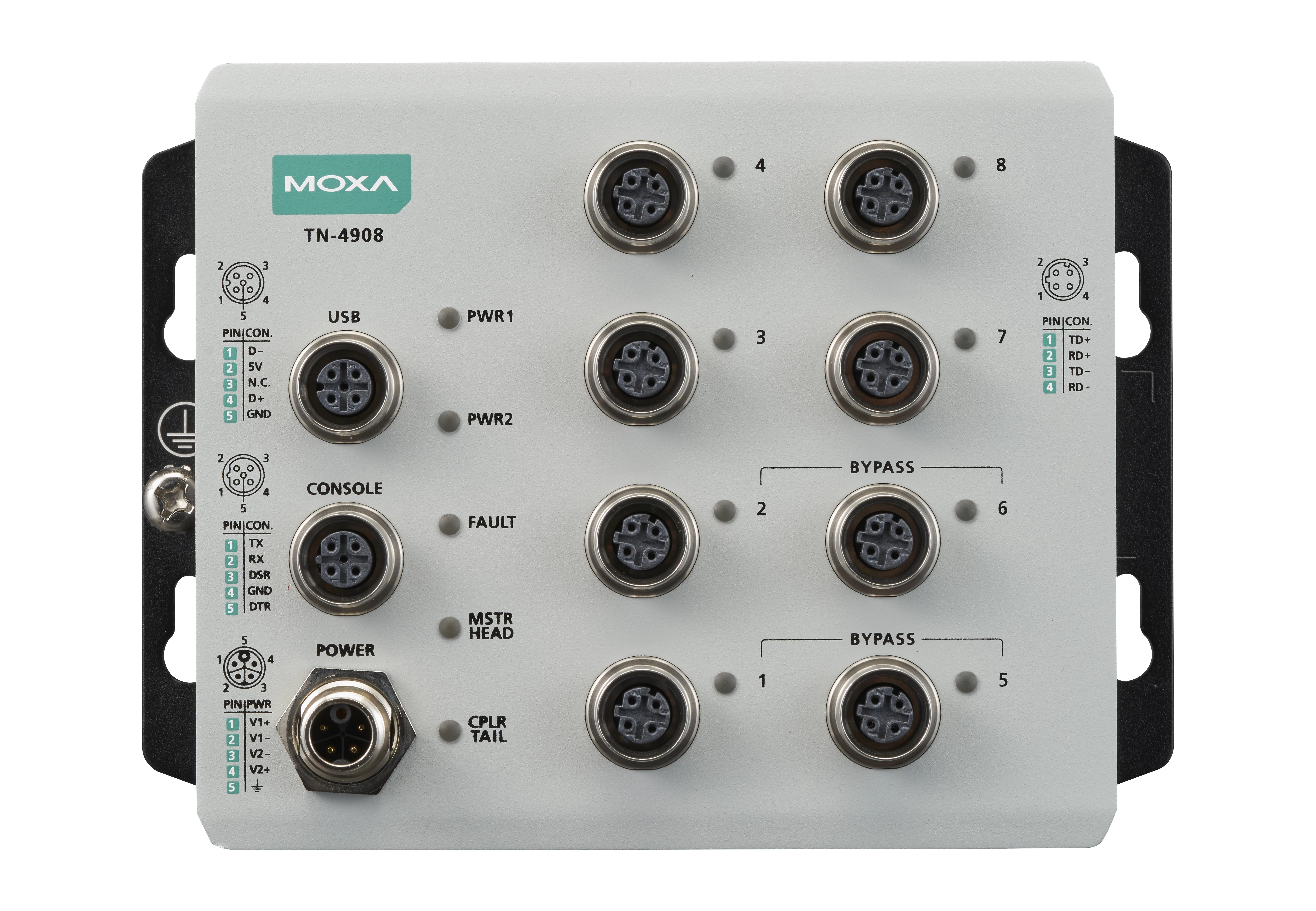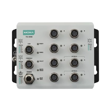 A Moxa ToughNet TN-4900 sorozatú M12 csatlakozós routercsalád, melyet vasúti alkalmazásokhoz tervezték, többek között vasúti járművekben és a pálya mentén történő telepítéshez. A sorozat 8 Gigabites portot és akár négy bypass relé portot kínál. A routerek tűzfal-, ETBN- és routingfunkciókkal rendelkeznek, megkönnyítve ezzel az alkalmazások hálózati telepítését. A robusztus M12 és egyéb kör alakú csatlakozók garantálják a megbízható működést rázkódás vagy ütés esetén is.