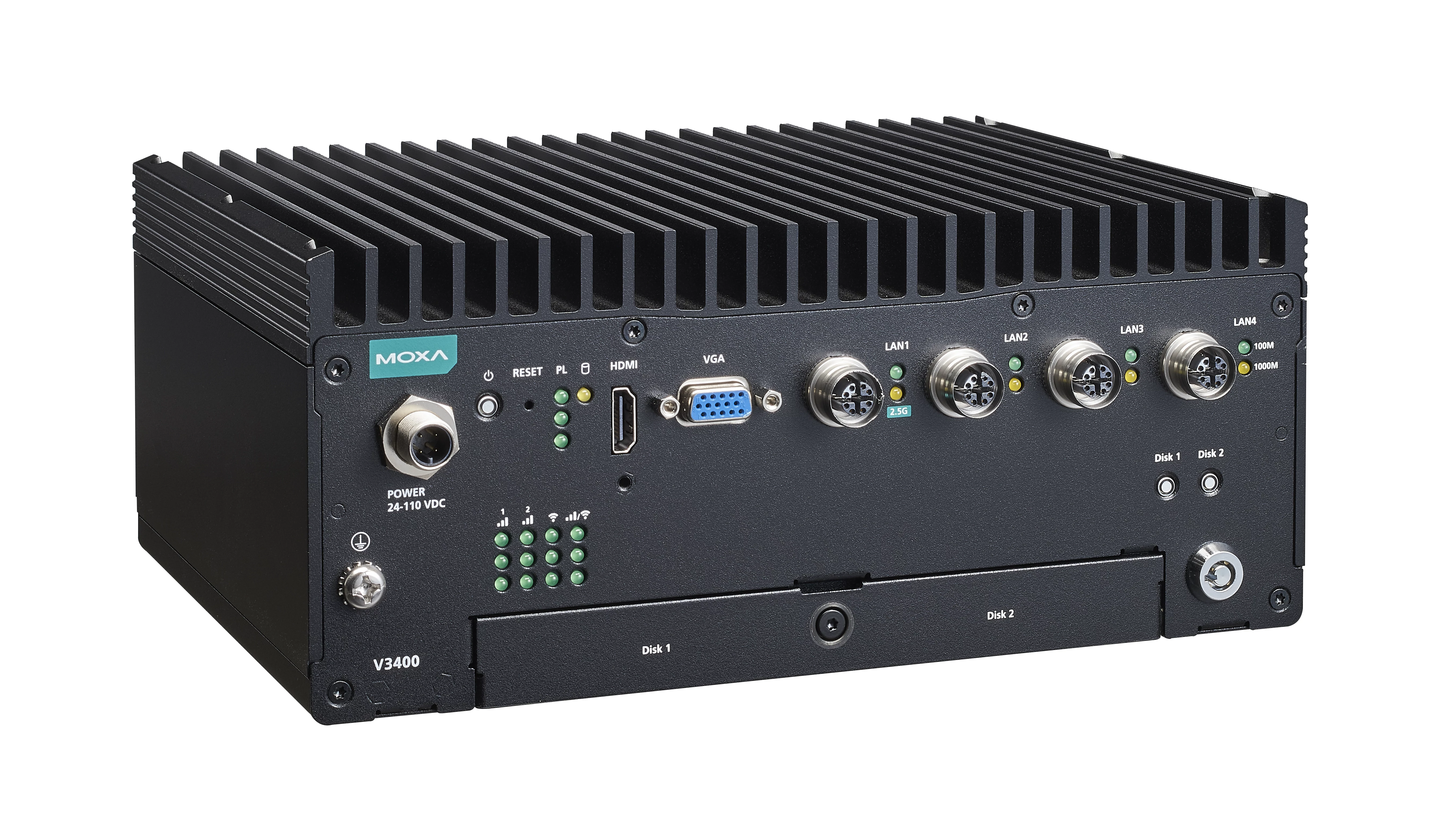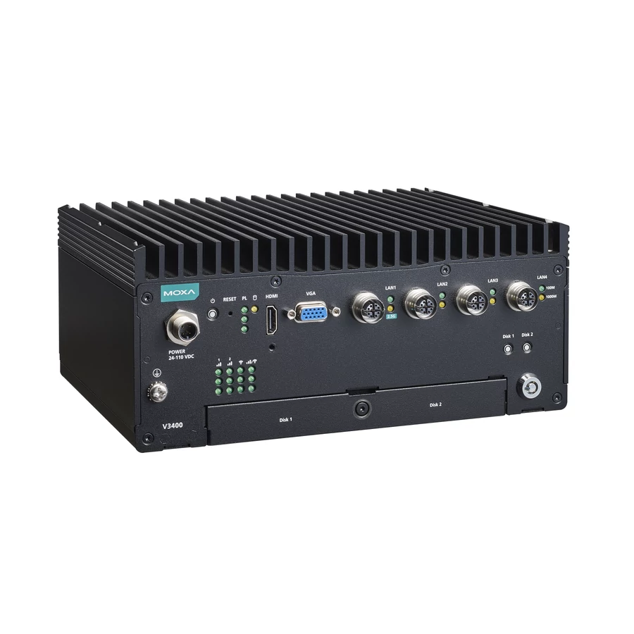 A Moxa V3400 sorozatú beágyazott számítógépek nagy teljesítményű Intel® Core™ i7/i3 processzorra épülnek, és akár 64 GB RAM-mal, egy M.2 2280 M kulcsos bővítőhellyel, valamint két menet közben cserélhető HDD/SSD tárhellyel rendelkeznek a tárolás bővítéséhez.